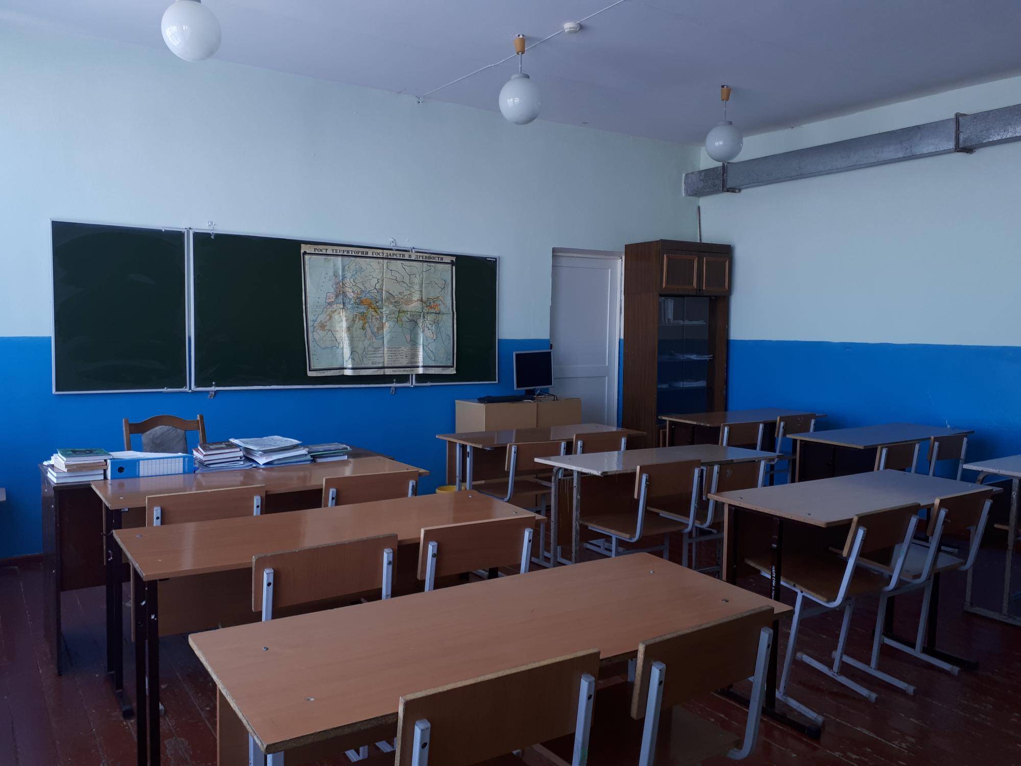 В кабинете истории 18 мест для учащихся, 1 — учителя. Кабинет оснащен компьютером, телевизором, DVD. В лаборатории имеется набор карт по темам "Древний мир", "Древняя Русь", "История России 20 века".