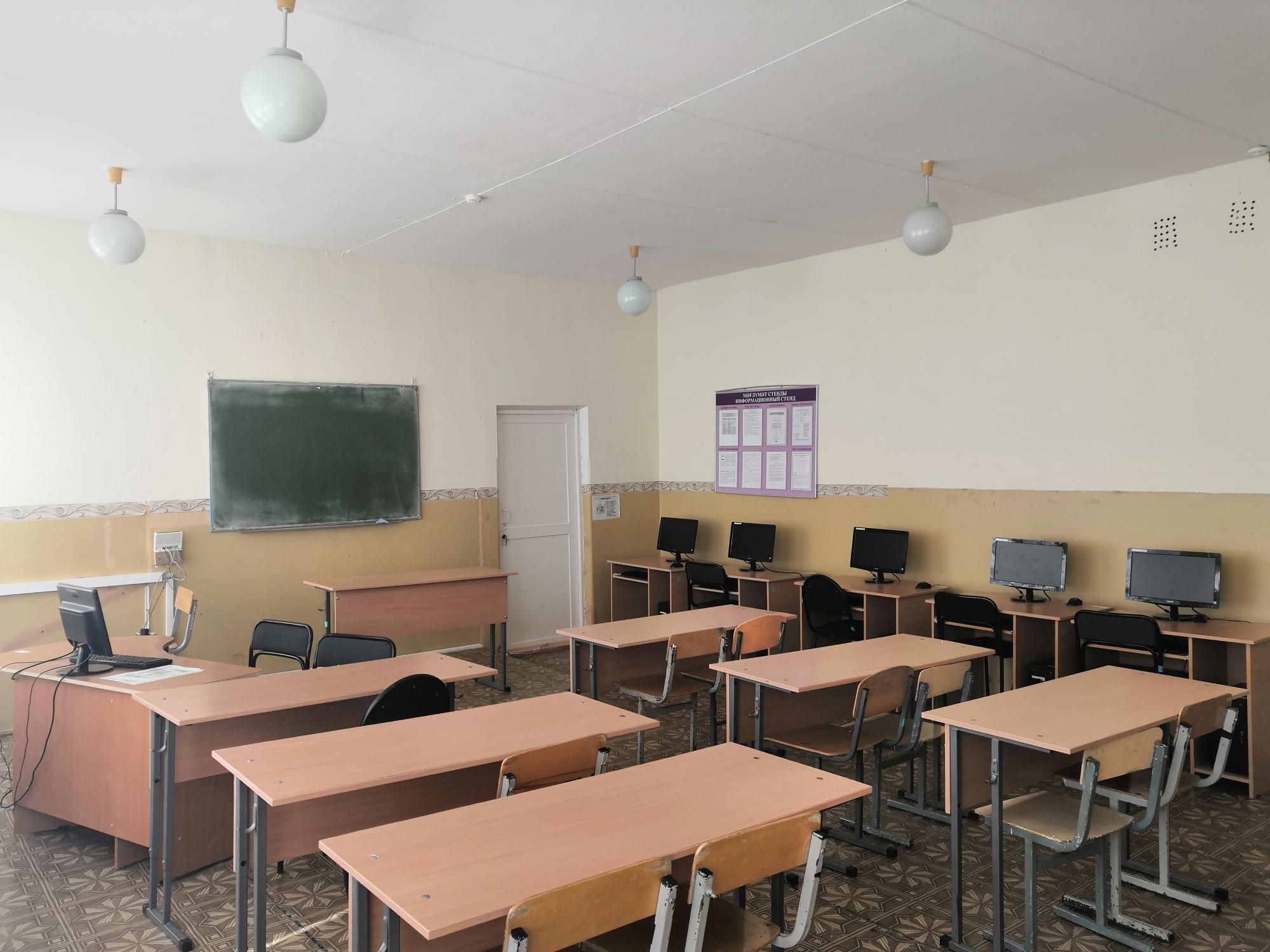 Кабинет информатики предназначен для проведения занятий в 7-11 классах. На компьютерах установлено необходимое программное обеспечение. Во время занятий проводятся физкультминутки, чередование видов деятельности. Площади и оборудование кабинетов информатики соответствует гигиеническим требованиям к персональным электронно-вычислительным машинам и организации работы.