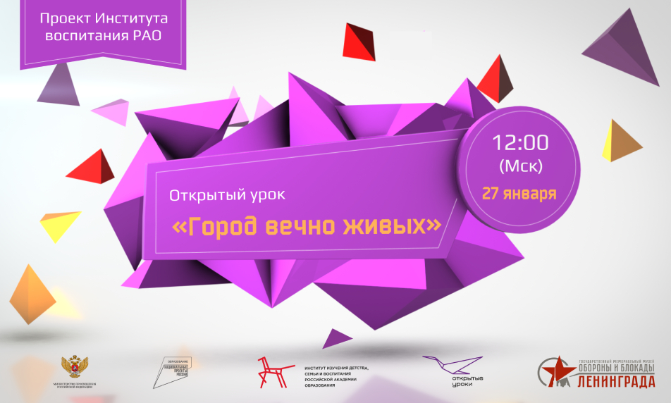 27 января в 12:00 по московскому времени состоится Всероссийский открытый урок «Город вечно живых», посвящённый дню окончательного снятия блокады Ленинграда советскими войсками, которая длилась 872 дня. Проект инициирован Минпросвещения России.