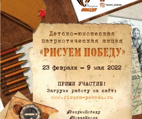 С февраля по май 2022 года в рамках федерального партийного проекта «Новая школа» стартует ежегодная гражданско-патриотическая акция «Рисуем Победу», которая проводится среди детей и молодежи 4-18 лет. К участию в акции принимаются детские творческие работы (рисунки, эссе), краткие тексты, посвященные беспримерному подвигу Советского народа в Великой Отечественной войне 1941-1945 гг. В этом году учреждена новая номинация - «методическая разработка» для работников учреждений образования, культуры и молодежной политики. Акция проводится с целью формирования и развития у детей и молодежи чувства патриотизма, уважения и сопричастности к славному ратному и гражданскому подвигу предков. В процессе творчества, на основе услышанного и осознанного исторического материала, участники вовлекаются в живой диалог поколений, узнают и осознают историю своей семьи и своей страны.