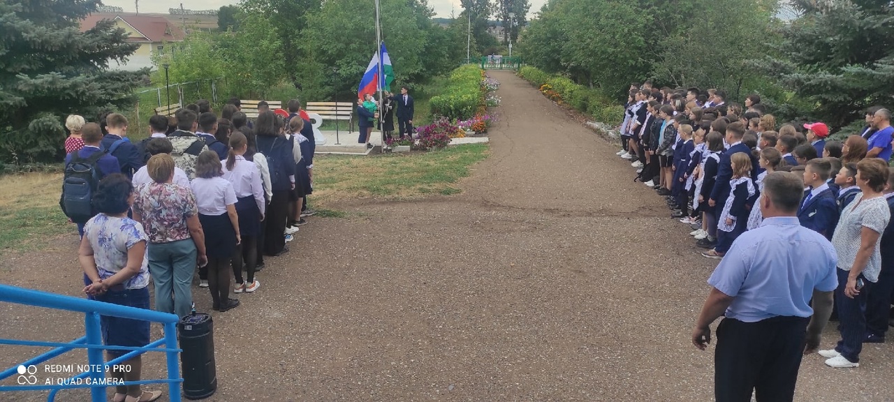 02.09.2022 в МБОУ СОШ с.Москово прошла церемония спуска государственного флага РФ и РБ