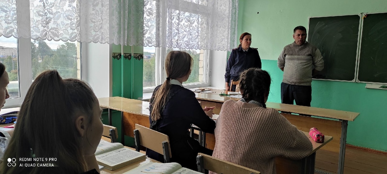 В разговоре с обучающимися Камалова А. Ф. затронула следующие темы: "Ответственность несовершеннолетних водителей", «Административные правонарушения и преступления среди несовершеннолетних», «Вред от курения электронных сигарет», «Здоровый образ жизни, безопасность».