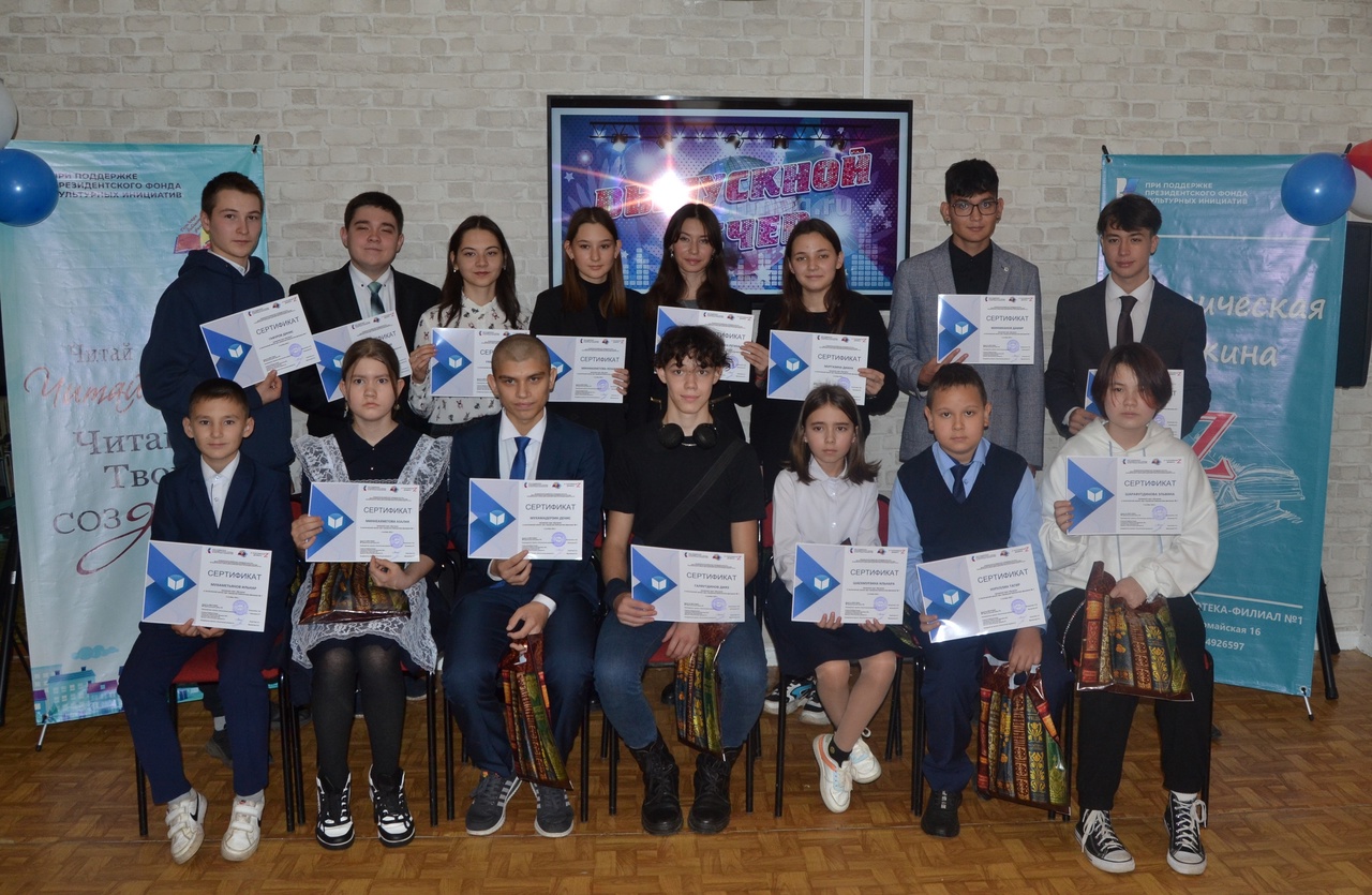 Выпускникам поэтической школы «Новая волна» были вручены Сертификаты об обучении в поэтической школе при городской библиотеке-филиале №1, сборник «Новая волна поэзии Дюртюли» и памятные подарки, предоставленные партнером проекта комитетом по делам молодежи и развитию физической культуры, спорта и туризма администрации МР Дюртюлинский район РБ.