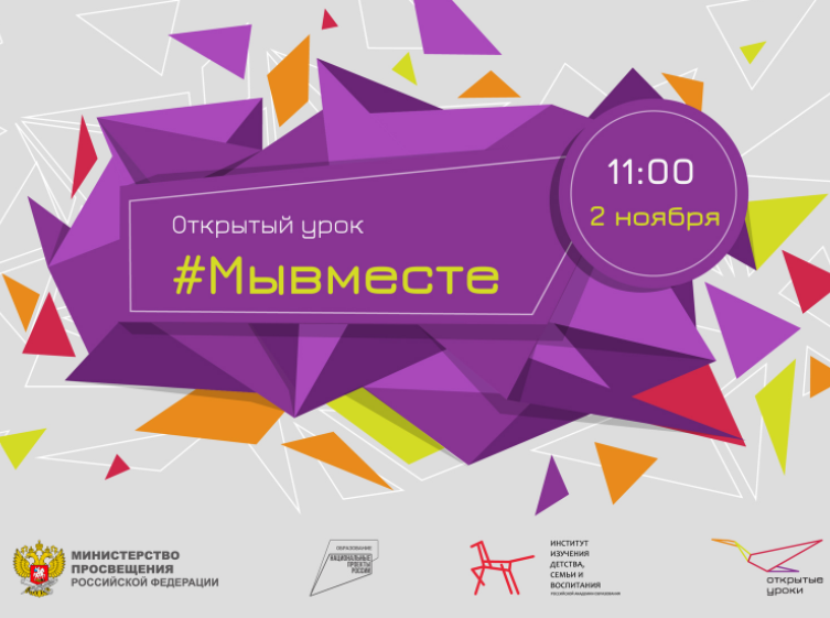 Приглашаем 2 ноября 2020 в 11.00 по московскому времени на Всероссийский открытый урок «#Мы вместе», посвященный празднованию в Российской Федерации Дня народного единства.