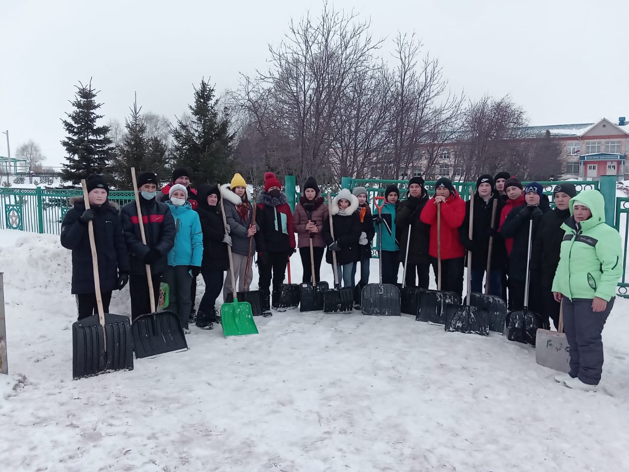 30 и 31 января 2021 года в рамках акции "Добрая суббота и воскресенье с семьёй" вместе с учащимися и их родителями провели мероприятие по уборке снега в парке Победы и тротуарной дорожки вдоль школы.